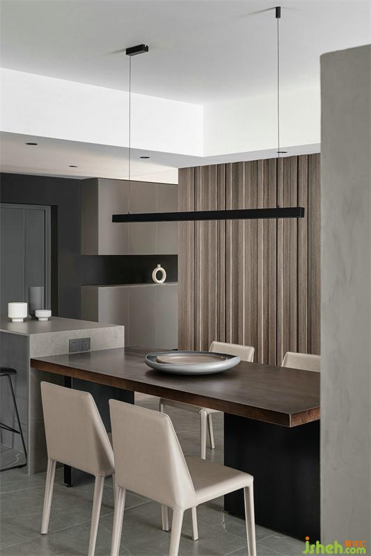島臺與餐桌的一體式設計,營造了融融的會客式餐廚空間。LDK一體化生活情境,讓家的氛圍更濃烈更溫馨。
