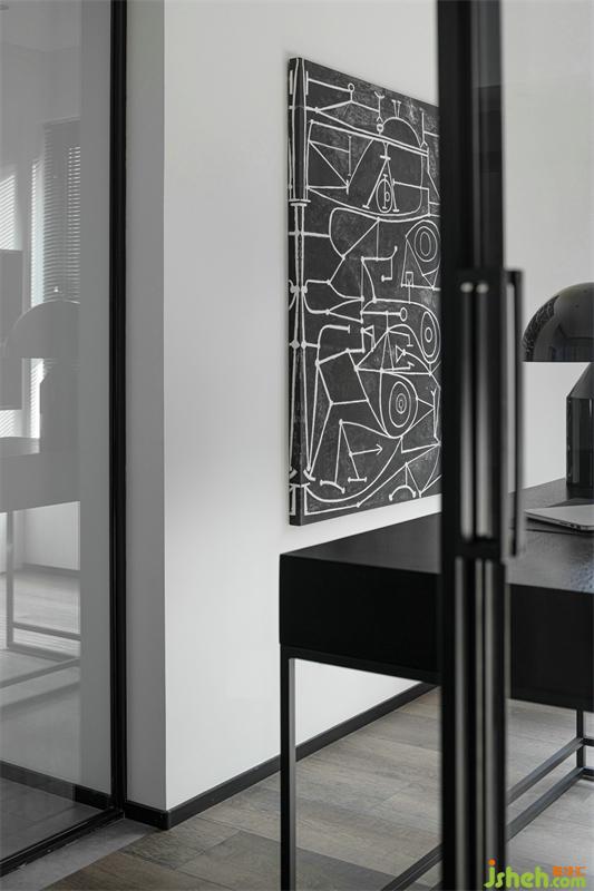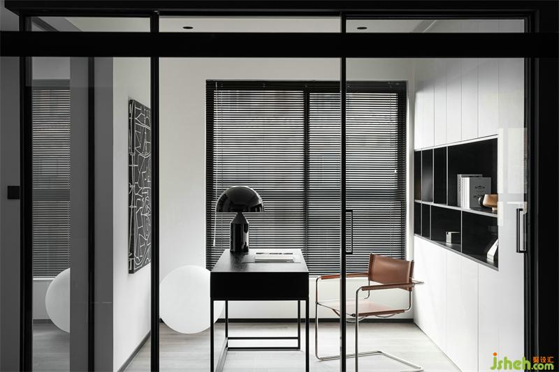 The abstract geometric hanging paintings live the entire study room; it gives people infinite reverie, and the dimension of thinking extends infinitely. The glass sliding door encloses the study space to maximize the vision; the lighting is excellent and the mood is clear. A whole surface of storage + partial display cabinets, beautify the practical functions, and ensure the neatness and integrity of the space; the semi-open layer design increases the transparency and artistry of the space and the space.