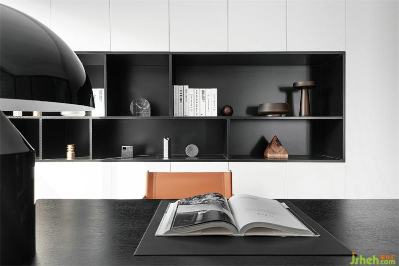抽象幾何掛畫,點亮了整個書房;給人以無限遐想,思考的維度也無限延伸。玻璃移門圍合書房空間,實現(xiàn)了視覺最大化;采光極好讓人心境明朗。一整面的收納+局部展示柜,美化實用功能,保證了空間的整潔完整;半開放的層板設計更是增加了空間與空間的通透與藝術(shù)性。