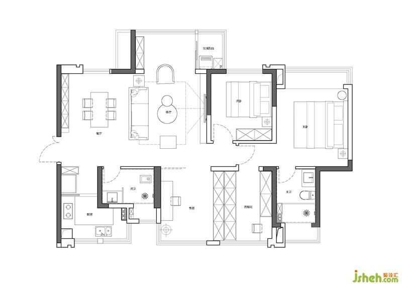 本案業(yè)主是通過(guò)老客戶(hù)介紹找到我們。屋主是一對(duì)準(zhǔn)備步入婚姻殿堂的90后環(huán)藝專(zhuān)業(yè)夫妻,對(duì)審美有一定要求;原戶(hù)型為一套120平的四居室,夫妻二人常住,預(yù)留寶寶房間。屋主希望自己的家溫馨、質(zhì)感、不喜歡淺色調(diào),同時(shí)改善原本房屋通風(fēng)、采光不理想的現(xiàn)狀。