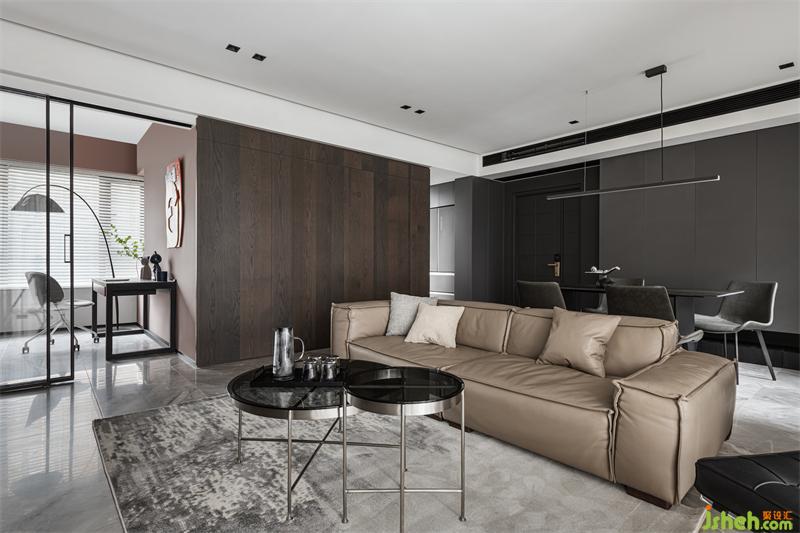 灰色系列地磚地毯的選擇,讓整屋和諧靜謐。