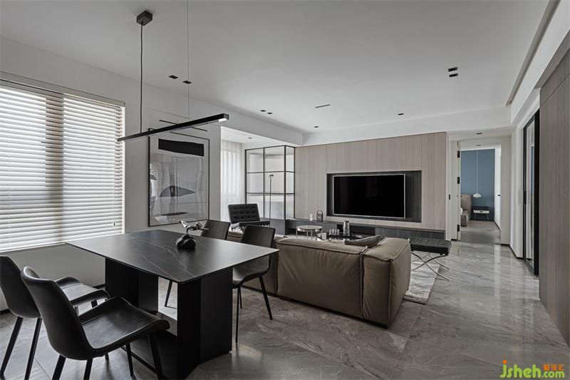 In the positioning and selection of living room furniture, focus on comfortable experience; the softness of the sofa allows you to be alone and free to release. The open design of the dining room side cabinets echoes the white shutters, making the dining room brighter and more comfortable. A stainless steel side table with a book and a tea can be placed at hand to make the space appear quiet and textured. In a busy afternoon, make a cup of coffee and read a book, and my heart is full of joy and fullness.
