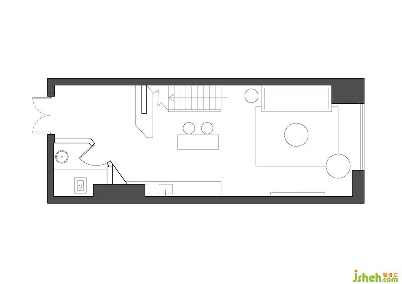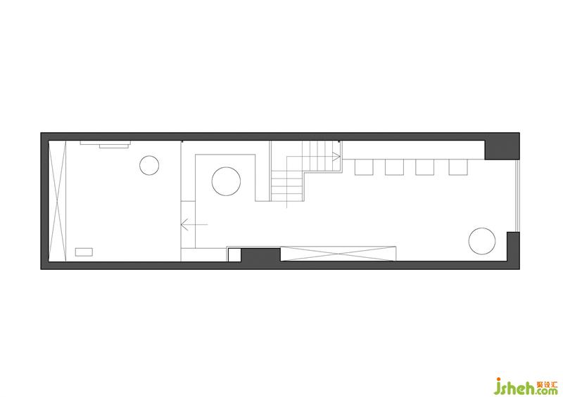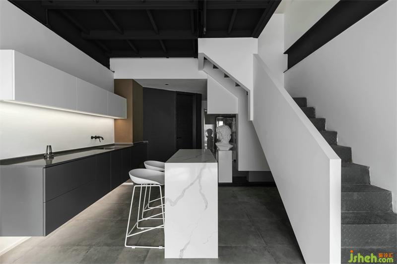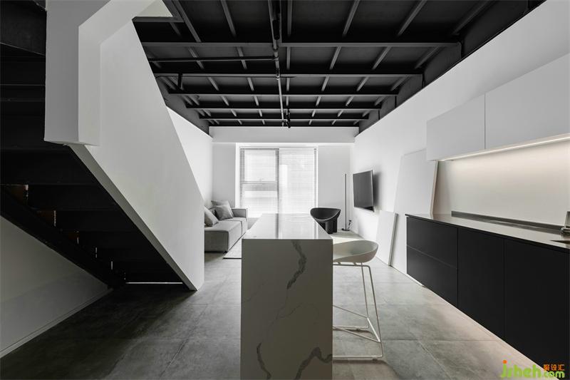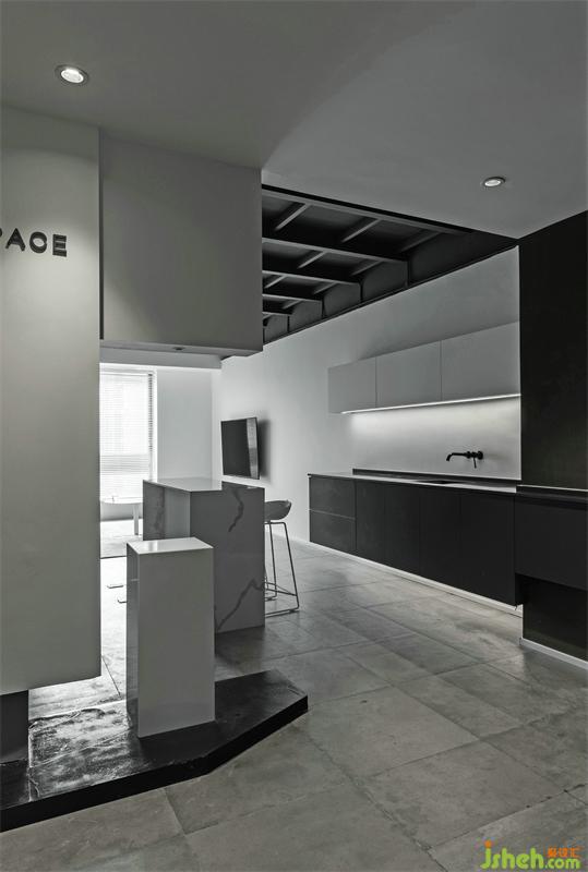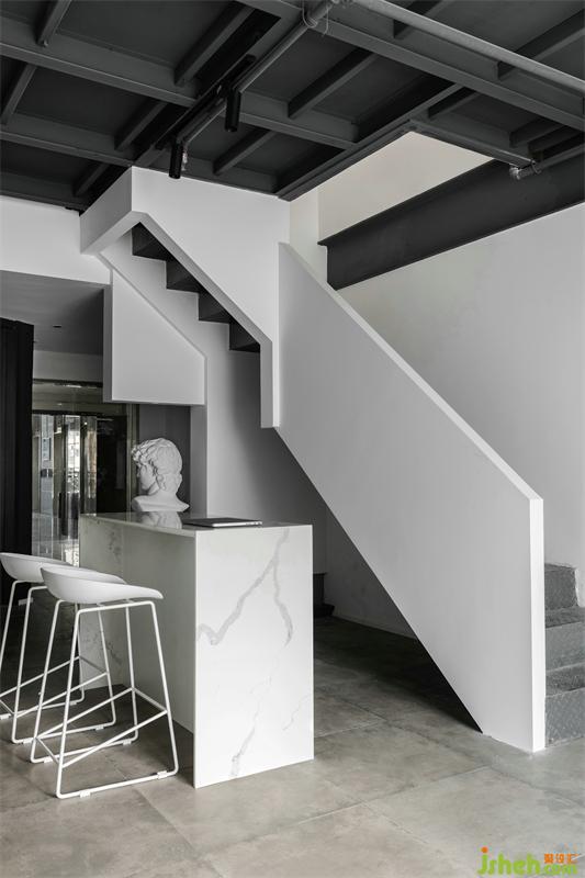 入口玄關(guān)背景設(shè)計(jì)成半鏤空形式,使得玄關(guān)視覺(jué)變大,同時(shí)也起到遮擋樓梯的作用,讓外界和工作室內(nèi)部有更好的過(guò)度。
