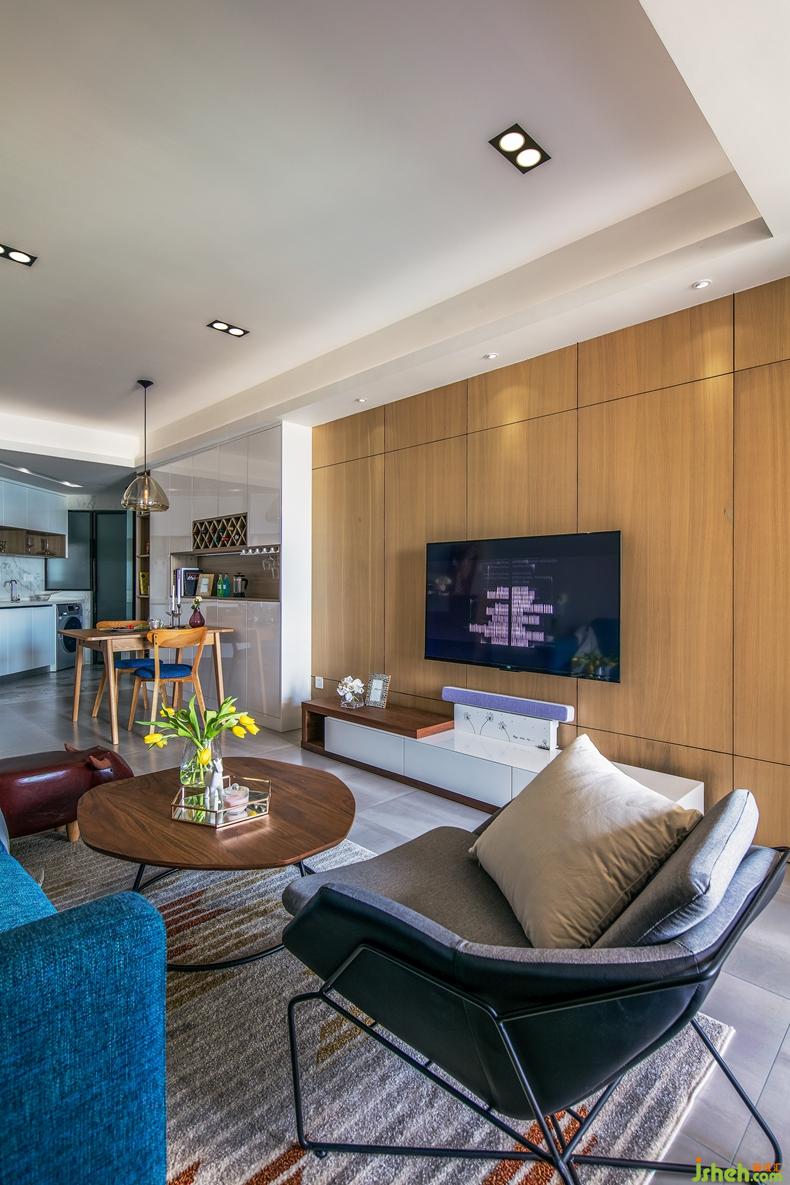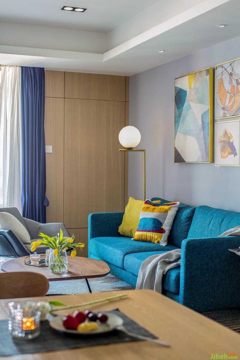 室內(nèi)設(shè)計(jì)師畫筆一落,整面溫潤(rùn)的背景墻落入客廳內(nèi),同時(shí)隱入了一扇主臥門。隱形設(shè)計(jì)手法,既解決了門朝廳的問題,又拓寬了客廳的整體視覺效果。