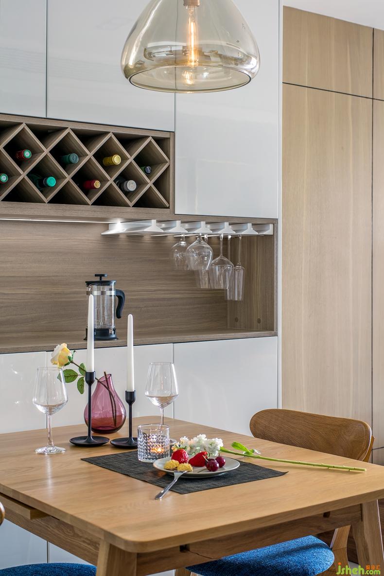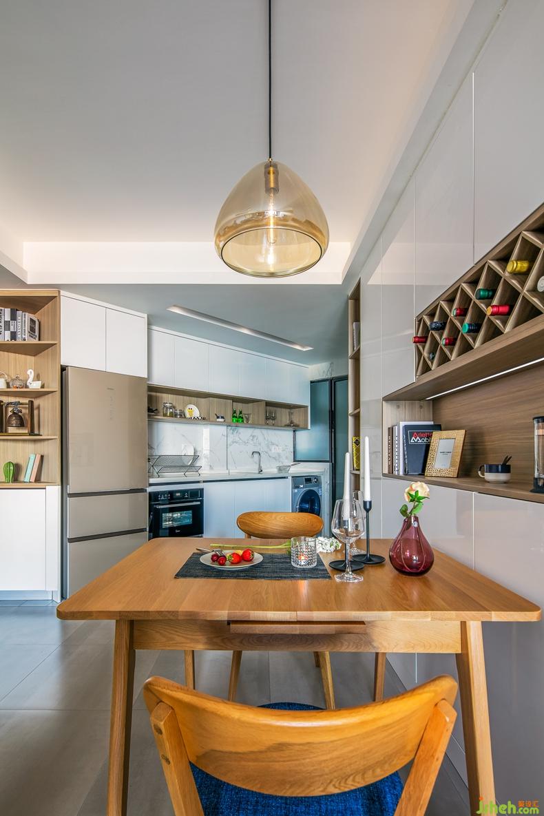 餐廳和廚房是一個(gè)家里,最有煙火味兒的地方。設(shè)計(jì)師以溫潤(rùn)的原木色、雅致的純白與肌理清晰的木紋灰落定餐廳空間的基調(diào),柔和且大氣。