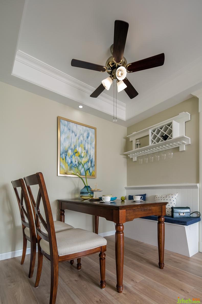 為了節(jié)省出更多活動(dòng)空間,打造流暢動(dòng)線,餐廳采用卡座式的設(shè)計(jì)。墻上的酒柜設(shè)計(jì)彌補(bǔ)了小空間不足以獨(dú)立設(shè)置酒柜的遺憾。