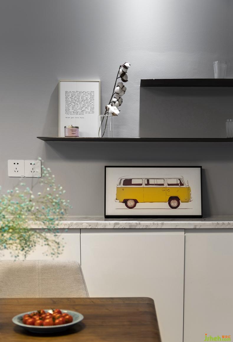 2.敲掉廚房部分墻體,讓餐廚空間更好的互動。餐廳打造柜子,與廚房相連部分可充當(dāng)吧臺功能。
