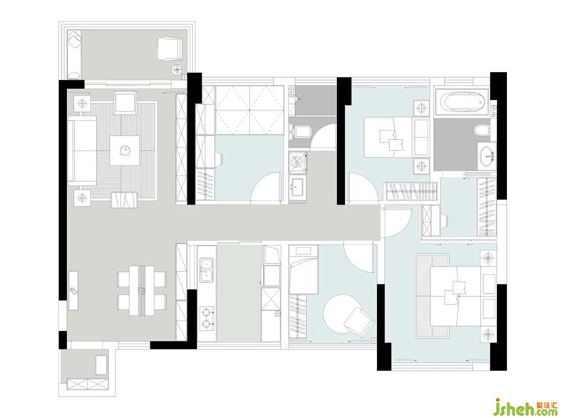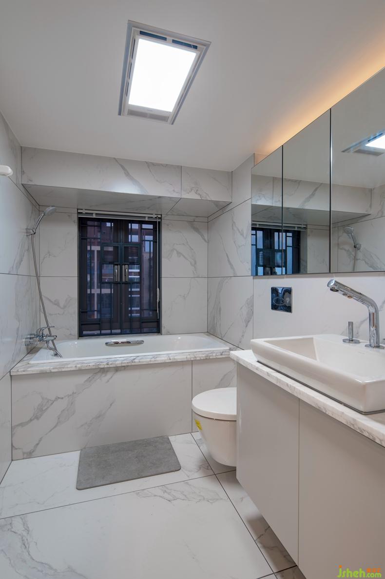 5.公共衛(wèi)生間打造成干濕分區(qū),并將洗衣機干衣機放在干區(qū),為陽臺騰出更多空間休閑。