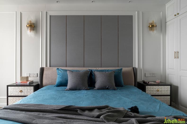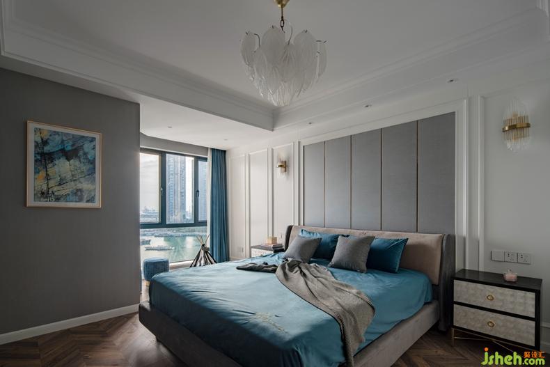 主臥以高級(jí)灰色調(diào)、沉靜的藍(lán)色為主,營(yíng)造靜謐舒緩的睡眠環(huán)境。精致的壁燈、吊燈,提升了空間的質(zhì)感,內(nèi)斂中又不失優(yōu)雅格調(diào)。