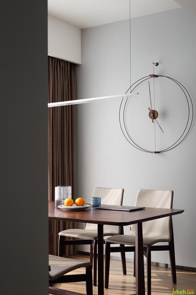 △手機(jī)照。設(shè)計(jì)感十足的掛鐘做餐廳的點(diǎn)綴,寥寥幾根線條就能描繪出時(shí)尚與藝術(shù),就是安裝的過程中花費(fèi)了一番功夫。深圳設(shè)計(jì)公司