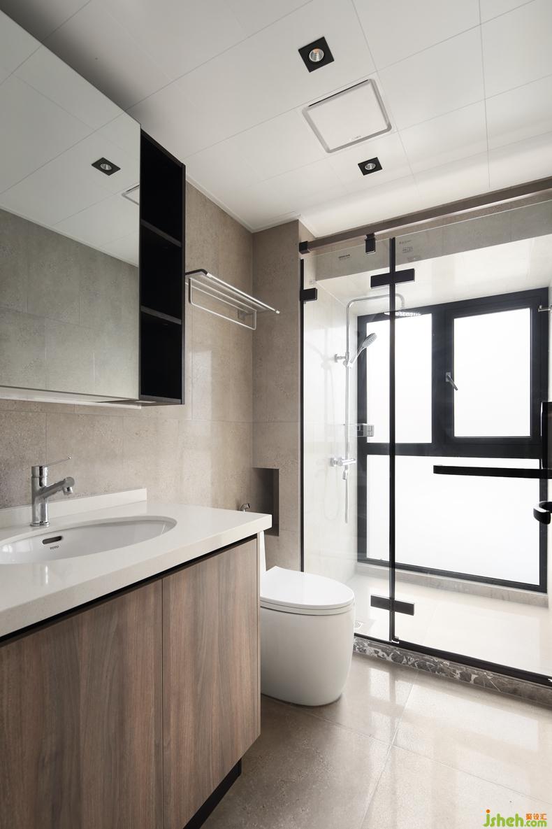 △公衛(wèi)設(shè)計(jì)從實(shí)用的角度出發(fā),精簡(jiǎn)的潔具,與客餐廳呼應(yīng)的浴室柜,墻上的壁龕,玻璃門的隔斷...設(shè)計(jì)源于生活,也用于生活。
