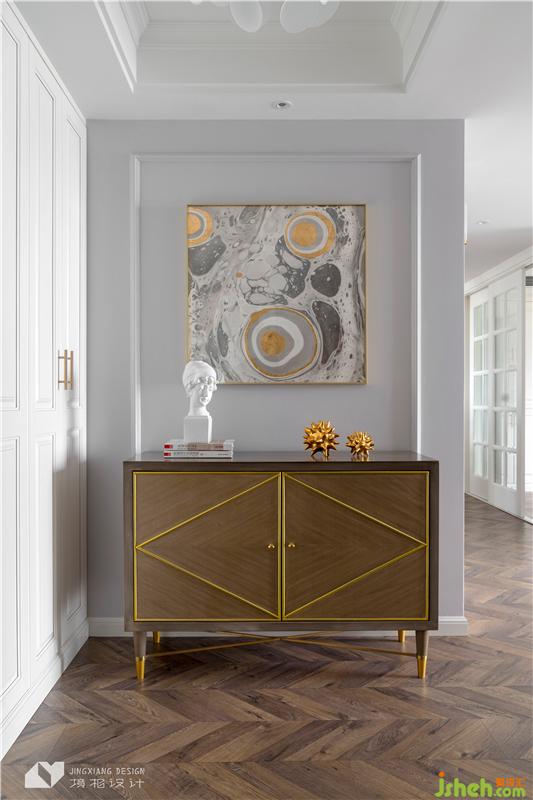 壓縮一間次臥后,不僅擁有流暢的動(dòng)線,而且還能打造整排柜子,滿足業(yè)主的儲(chǔ)物需求。裝飾畫(huà)的懸掛和雕塑的存在為空間注入藝術(shù)氣息,實(shí)現(xiàn)了品質(zhì)和藝術(shù)的和諧統(tǒng)一。