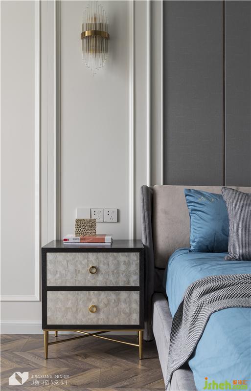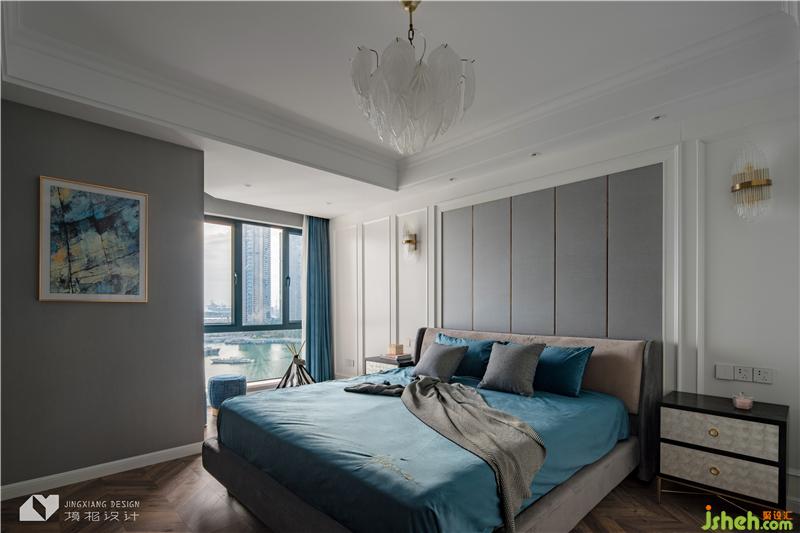 主臥以高級(jí)灰色調(diào)、沉靜的藍(lán)色為主,營(yíng)造靜謐舒緩的睡眠環(huán)境。精致的壁燈、吊燈,提升了空間的質(zhì)感,內(nèi)斂中又不失優(yōu)雅格調(diào)。室內(nèi)設(shè)計(jì)師