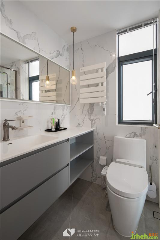 刪繁就簡,簡潔的空間基調(diào)就足夠出彩。寬闊的洗手臺、臺下盆設(shè)計、電熱毛巾架、隱藏式地漏… 細節(jié)設(shè)計充分考慮生活的便利性,更好的兼顧了實用性和美觀性。室內(nèi)設(shè)計師