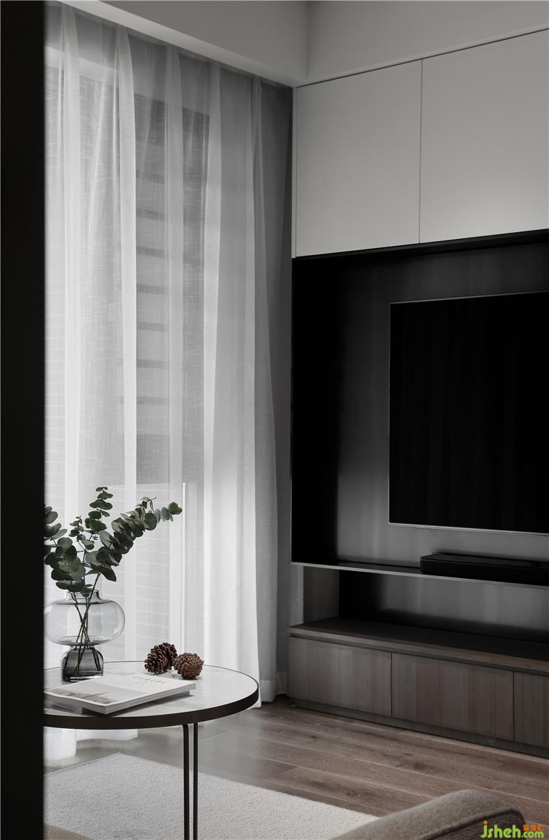 受戶型限制,客廳沒有陽臺,僅有一個落地窗。于是便用白紗做窗簾,最大限度的保障客廳光線。