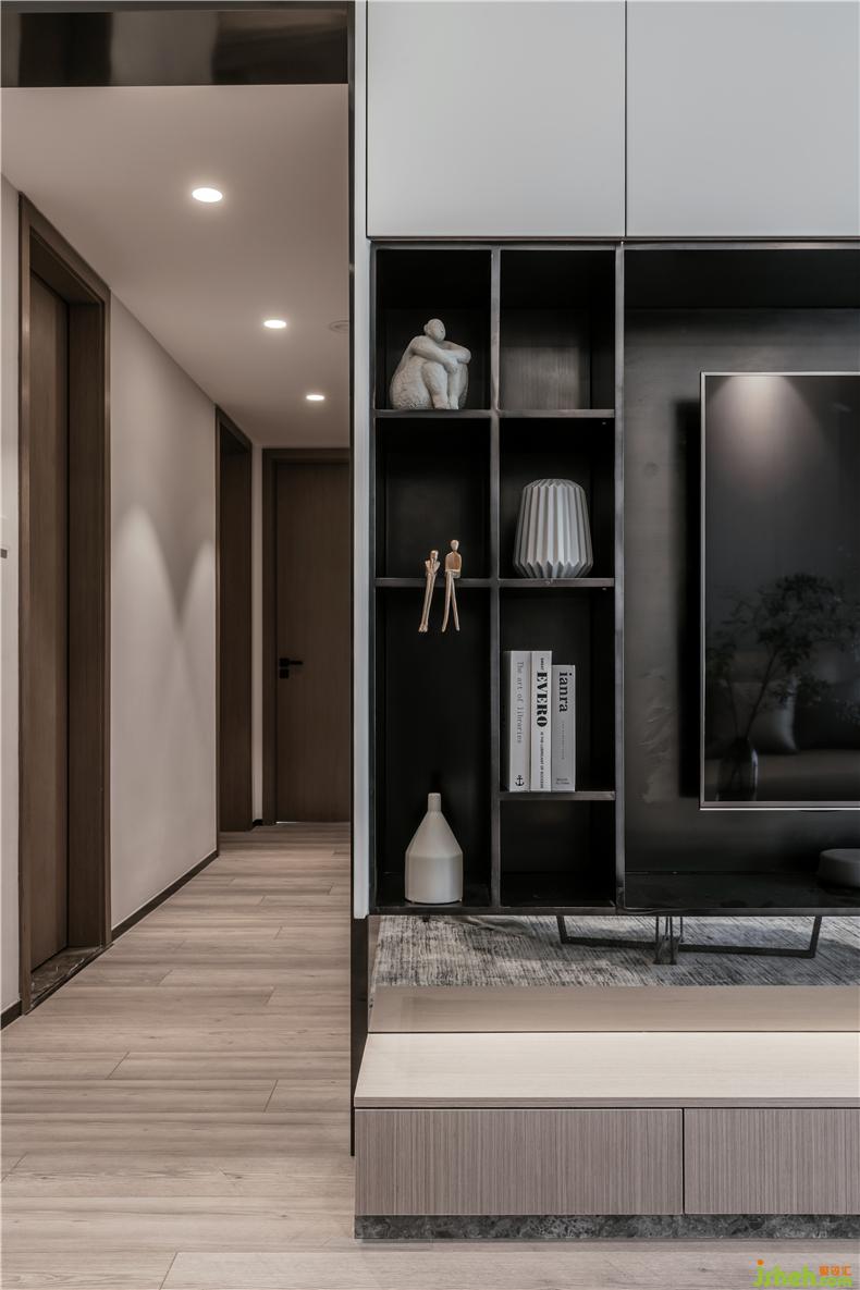 白色為封閉式柜子,黑色則是開放式擱板,錯(cuò)落有致,可以放各種物品。室內(nèi)設(shè)計(jì)師黑白相間、封閉與開放的結(jié)合、電視機(jī)下面的鏡子也十分巧妙...這些設(shè)計(jì)讓柜子也成為客廳的裝飾