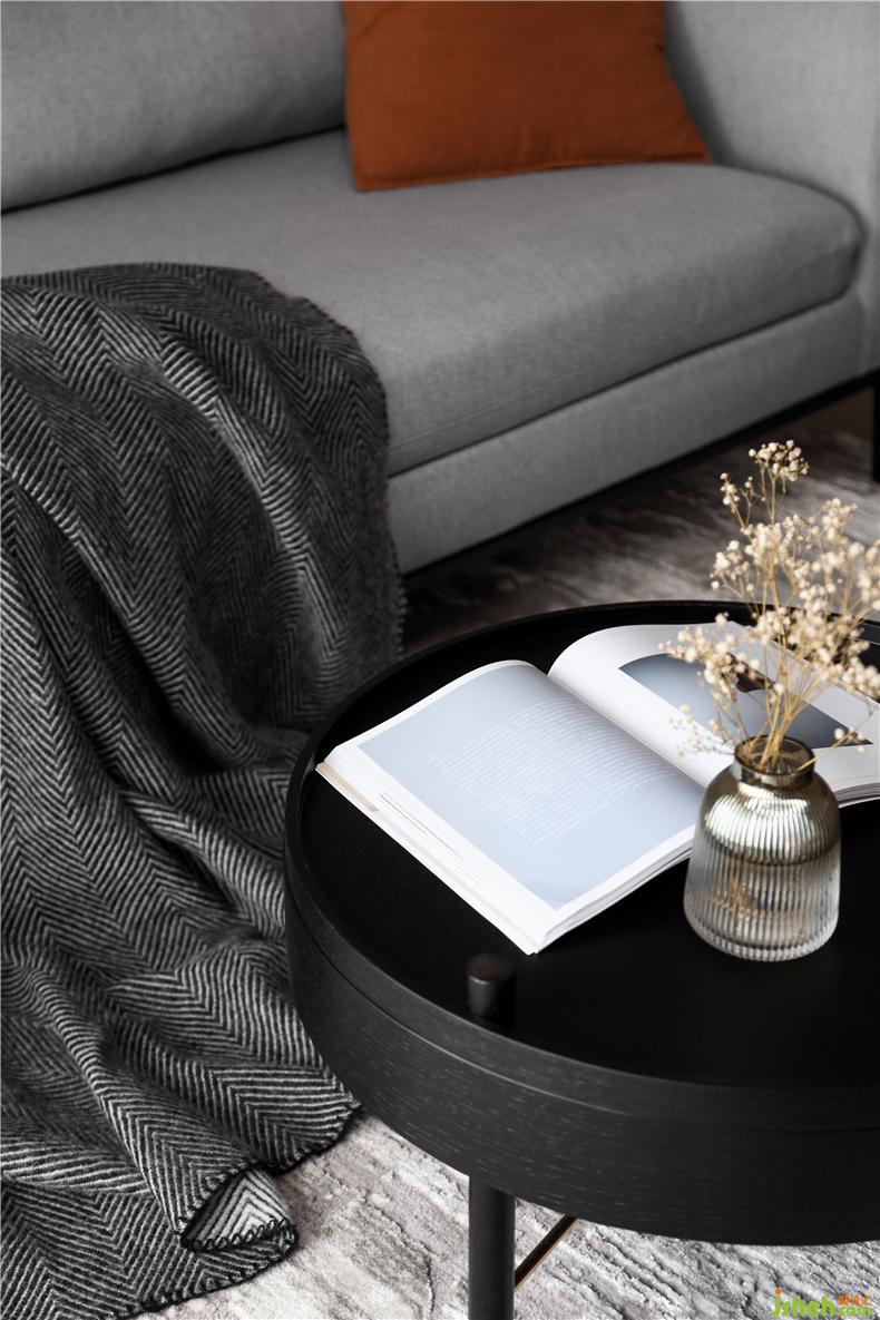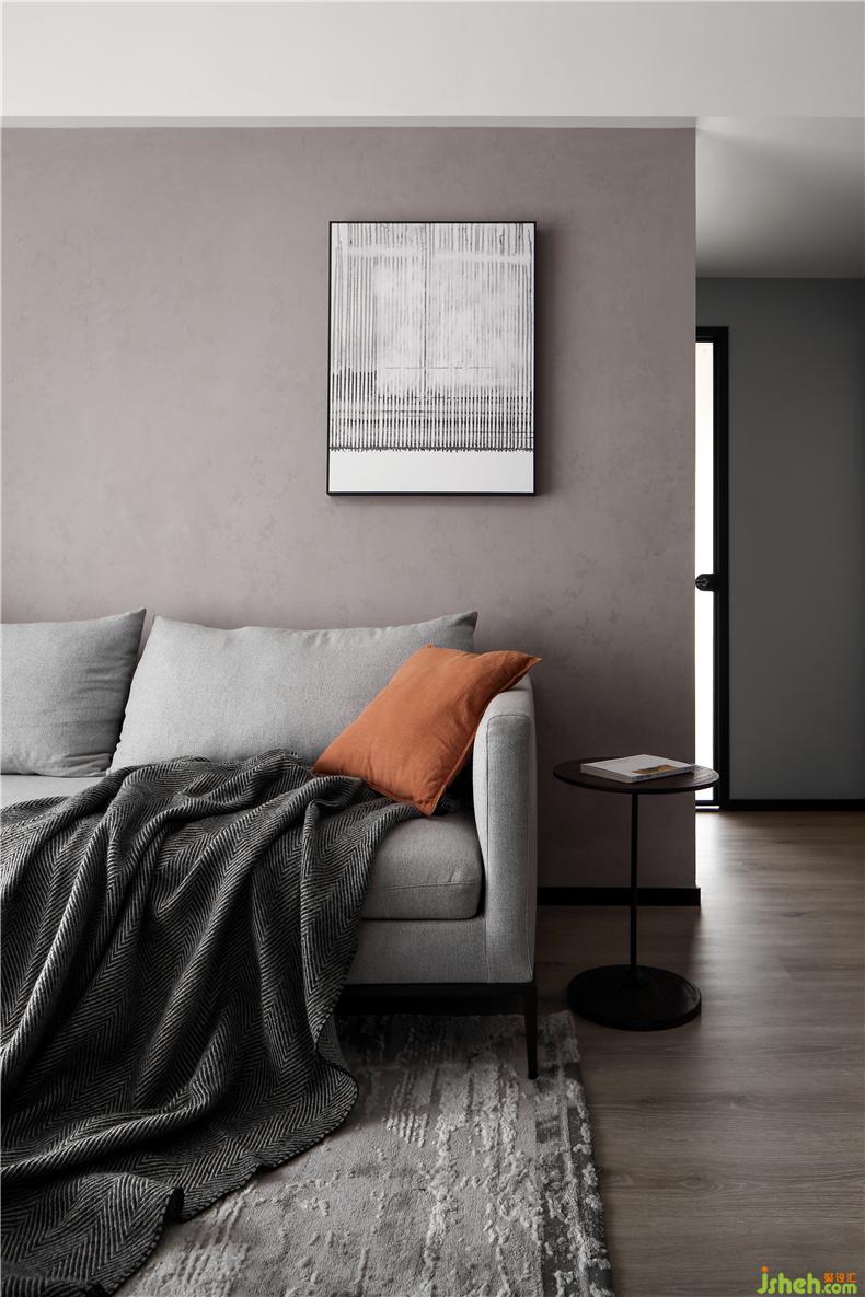 灰色地毯將整個客廳空間聚攏起來,透露著神秘的安心力量,室內(nèi)設(shè)計師柔軟的布藝沙發(fā),為視覺又增一分舒適,與慵懶的暮色粉相得益彰,隨手一拍便是時尚的沙發(fā)小景。