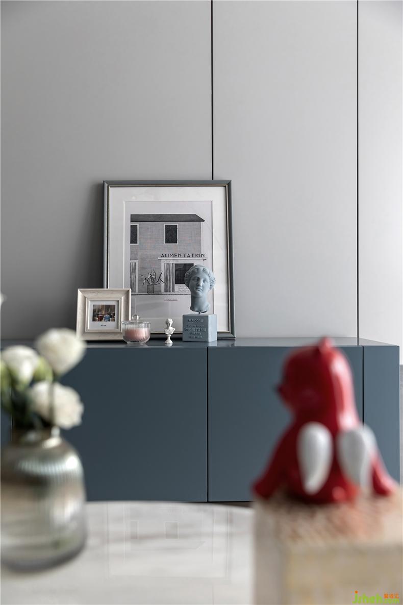 屋主在家做飯的次數(shù)屈指可數(shù),室內(nèi)設(shè)計師所以餐邊柜一部分用于儲備餐廳區(qū)域的雜物,另一部分則用于存放書籍,將實用性提升到最大。