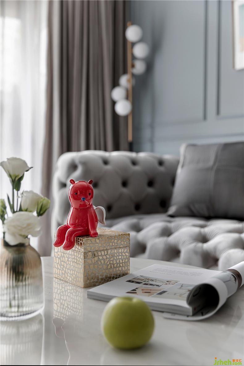 吊燈、茶幾全都融入黃銅元素,配上一張舒適的絲絨沙發(fā),無需多言,輕奢韻味便躍然浮現(xiàn)。