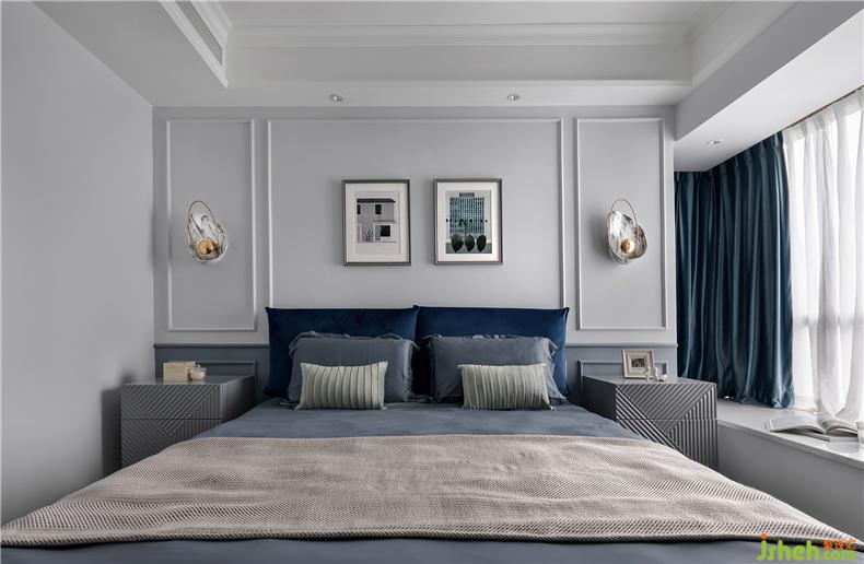 主臥運用了多種深淺不同的藍(lán)色系,將靜謐舒適的尺度拿捏的剛好,不會過于單調(diào),也不會過于繁瑣