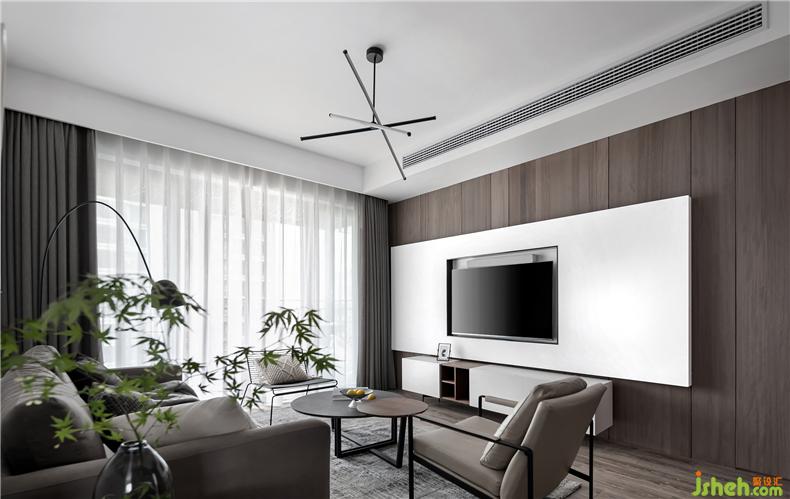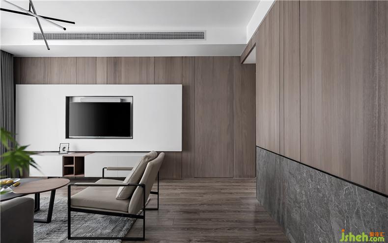 木色的地板,木色的墻面,客廳被一片溫潤的木色包裹,營造出非常放松的舒緩氛圍,緩解一天的疲憊。