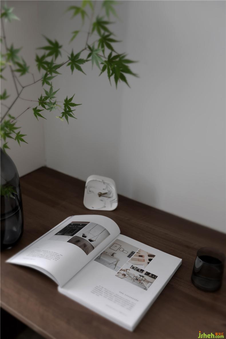 書桌與柜體相連,設(shè)計幾塊隔板,不僅可以增加收納空間,視覺效果上也更加輕盈。