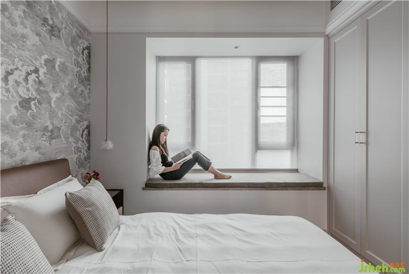 臥室以灰白為主題色,營(yíng)造舒緩入睡氛圍。保留原始飄窗,設(shè)計(jì)成獨(dú)立休閑區(qū),拓充臥室功能。潔凈百葉窗掌控光影,帶來(lái)不一樣的喚醒驚喜。