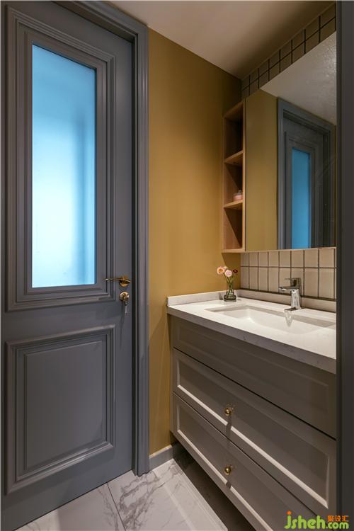 衛(wèi)生間三分離設(shè)計(jì),淋浴、馬桶分別用玻璃移門、木門隔斷,多人同時(shí)使用也互不打擾,提升利用率。雙層抽屜浴室柜,配以金色圓球把手,顏值與實(shí)用兼顧。