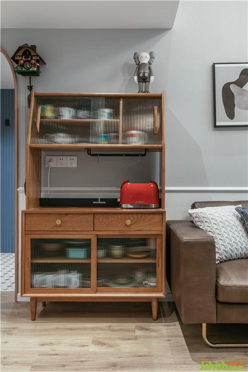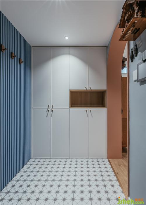 依據(jù)原有格局,靠墻增設(shè)頂天立地鞋柜,使玄關(guān)功能更為齊全,便于日常的生活使用。
