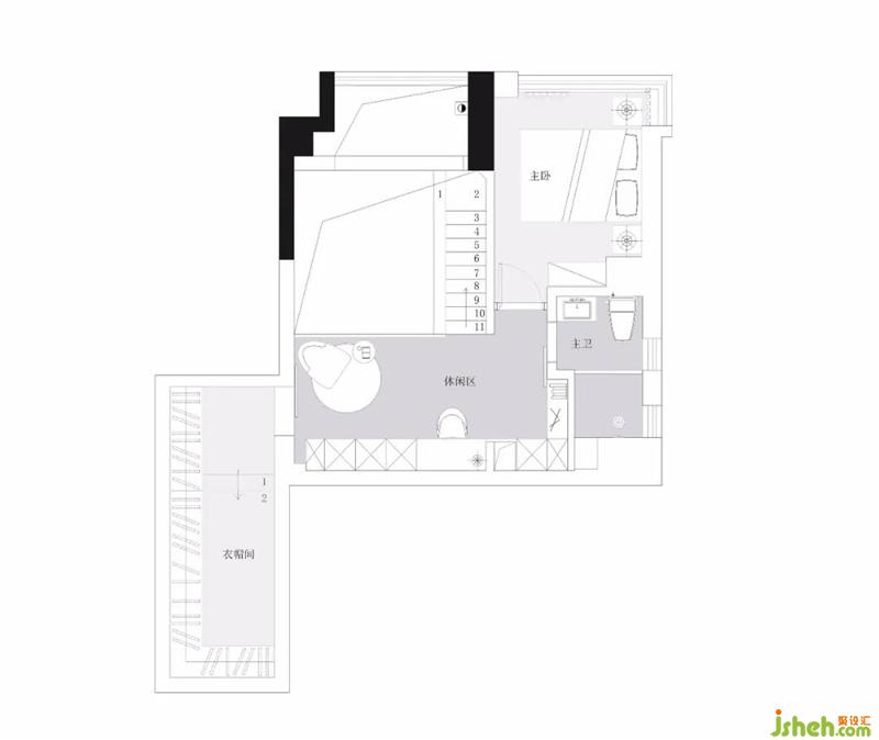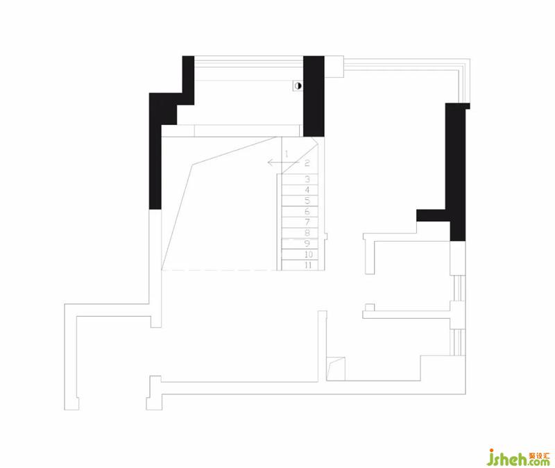 1.將樓梯改為鏤空踏步樣式,使室內(nèi)采光不受影響,消除空間局促感;