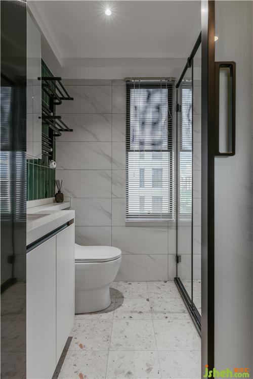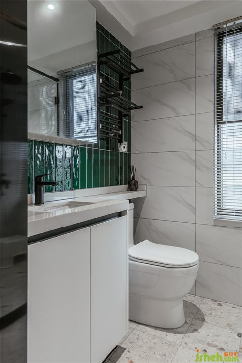 房間墻面采用PU線條和莫蘭迪綠色墻漆,搭配黑色鐵藝家具,拱形衣柜、暖色光源壁燈,營(yíng)造出溫暖的光影氛圍。