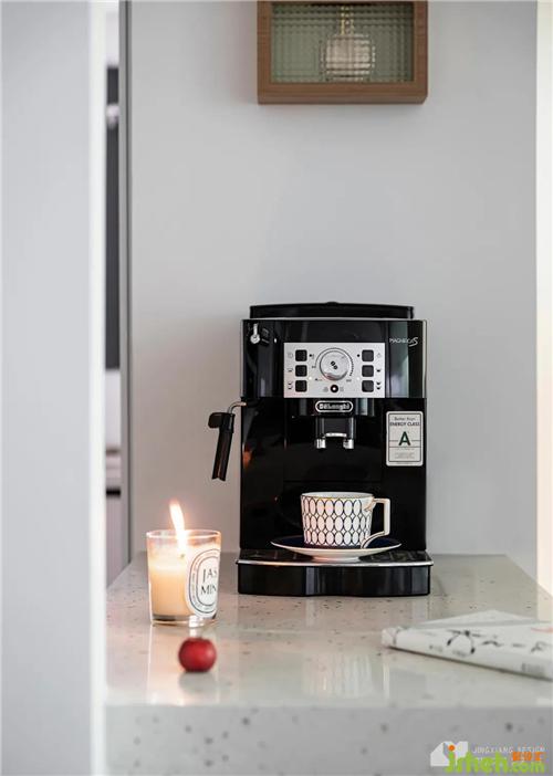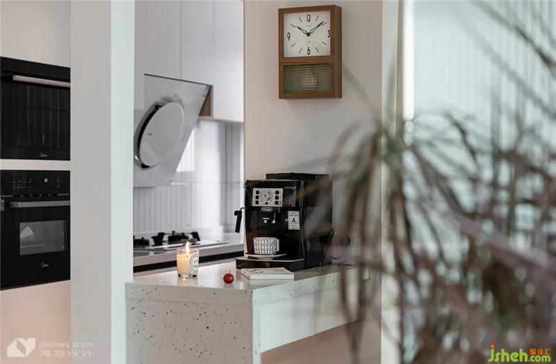 借助走道空間,打造小吧臺,充作家中的水吧區(qū),閑暇時,一杯香濃的咖啡和一本好書,就足夠消磨一整個下午。平日,做好的菜肴也可以直接擺在這里,釋放廚房操作空間。