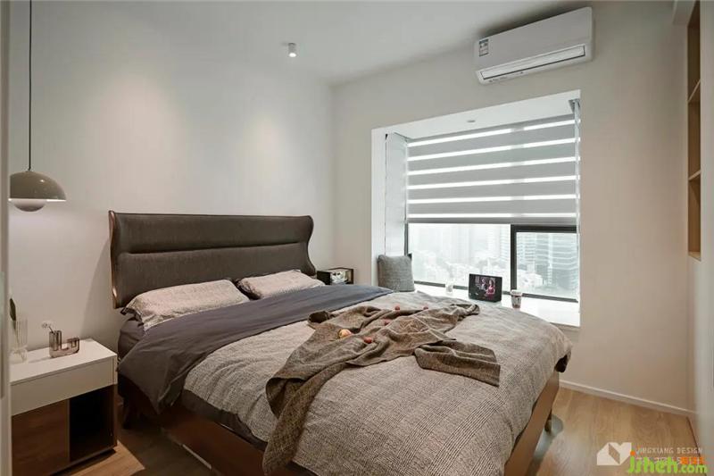 主臥墻體向書房推,便于打造整面衣柜。封閉與開放式的組合設(shè)計,將展示與收納融為一體。淺灰棉麻床品打造舒適的入睡氛圍,深色沙發(fā)靠背,大氣而沉穩(wěn),冷暖色調(diào)平衡得恰到好處。