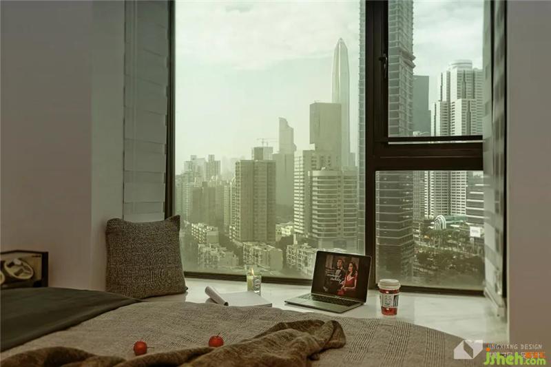 屋主希望臥室更具情調,因此我們保留原始飄窗設計,購置柔軟的抱枕,設計出一個獨立的休閑角,平日女主人可以在這里刷劇、看書,暢享下班后的個人時光。