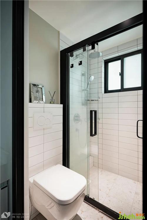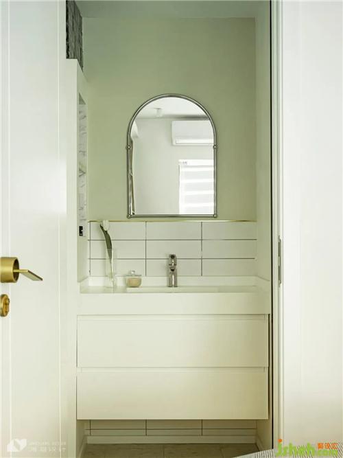 The design of dry wet separation makes daily use more convenient. Green bathroom paint, golden closure strip, arched bathroom mirror Full of exquisite style. Niches are set to facilitate the storage of toiletries, and the vision is more neat.