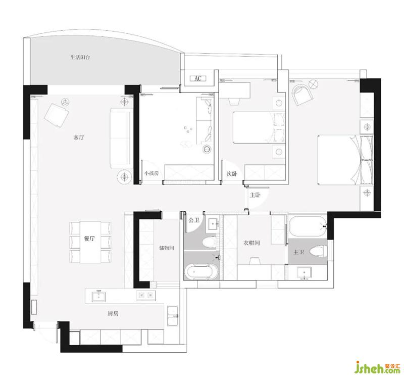 1. LDK設(shè)計(jì),空間更為通透明亮,也為家庭成員情感互動(dòng)提供便利。