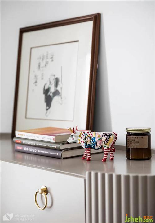 Use the partition method to realize the three-separation atmosphere layout. The combination of high cabinets, hidden and exposed, integrates storage and display functions. Pure white and dark gray are used on the walls and floors to form a strong color contrast and brighten the space.
