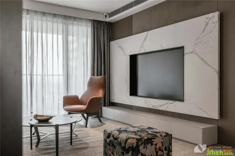 The ink-and-wash white stone slabs have smooth textures and a refreshing texture, blended with a little wood grille, and the spatial temperament is more full.
