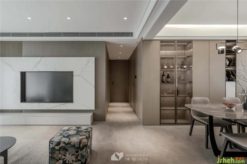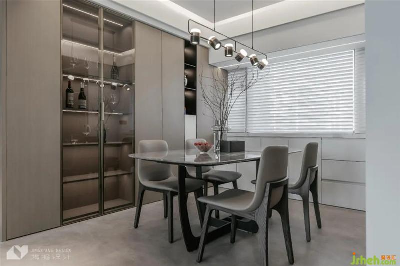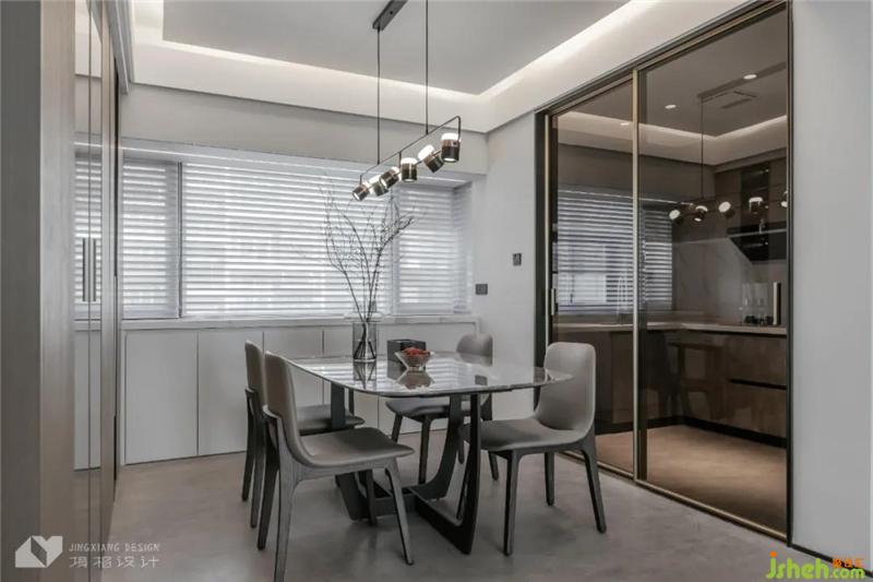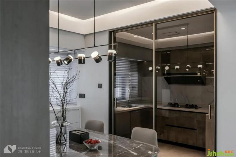 The transparent glass allows natural light to flow unimpeded, sweeping away the depression and depression of the enclosed space, and in a quiet room, strengthening the linkage between dining and kitchen.