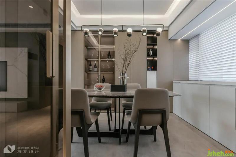 對(duì)坐的方桌,用真摯的交流,拉近彼此距離??烧{(diào)節(jié)吊燈,營造出溫馨的光影氛圍,大地色系巖板方桌,深圳裝修設(shè)計(jì)觸手升溫,質(zhì)感宜人。