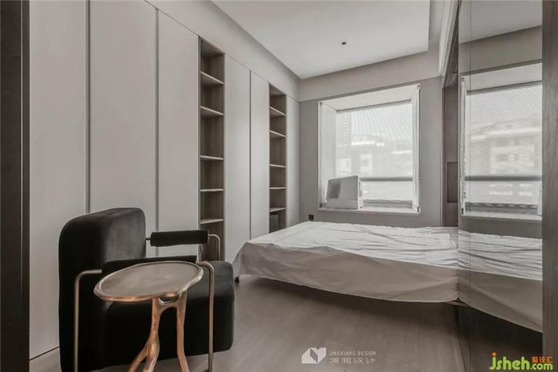 次臥布置簡(jiǎn)約,功能多樣。整墻通頂柜藏露結(jié)合,可收納日常雜物,開放格可做書柜,放上心愛的書籍,閑時(shí)于單人沙發(fā)處?kù)o坐讀書,生活愜意大抵如此。簡(jiǎn)約床可留宿偶爾來(lái)訪的客人,貼心的設(shè)計(jì)就是考慮到生活的每一種可能。