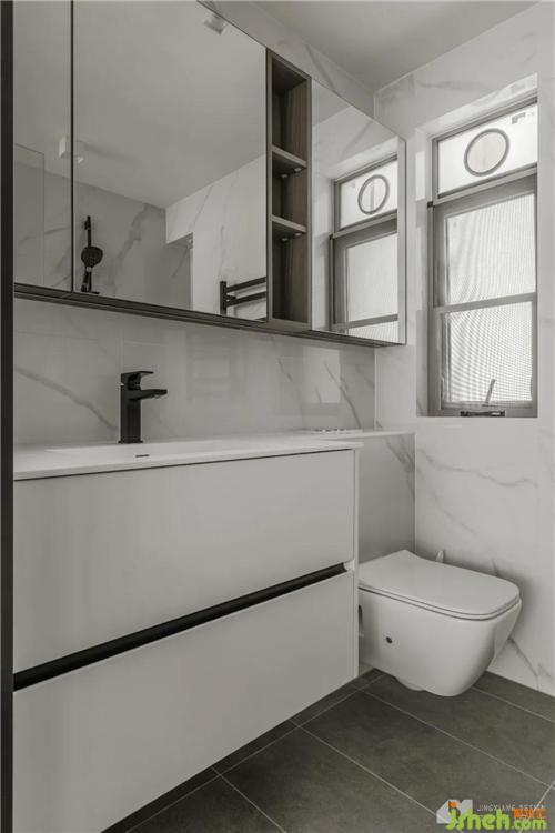 臺盆下方布置分層儲物柜,采用按壓式開門方式,無把手設(shè)計保持了空間的簡約格調(diào)。深圳家居設(shè)計下方挑空不留衛(wèi)生死角,方便掃地機器人進出打掃。壁掛式馬桶節(jié)省空間,詮釋懸空美學(xué)。