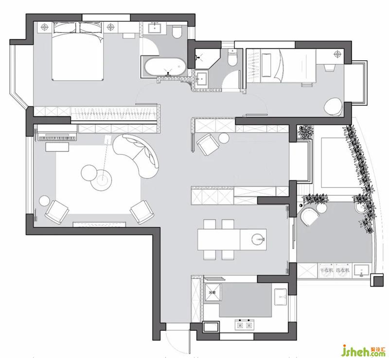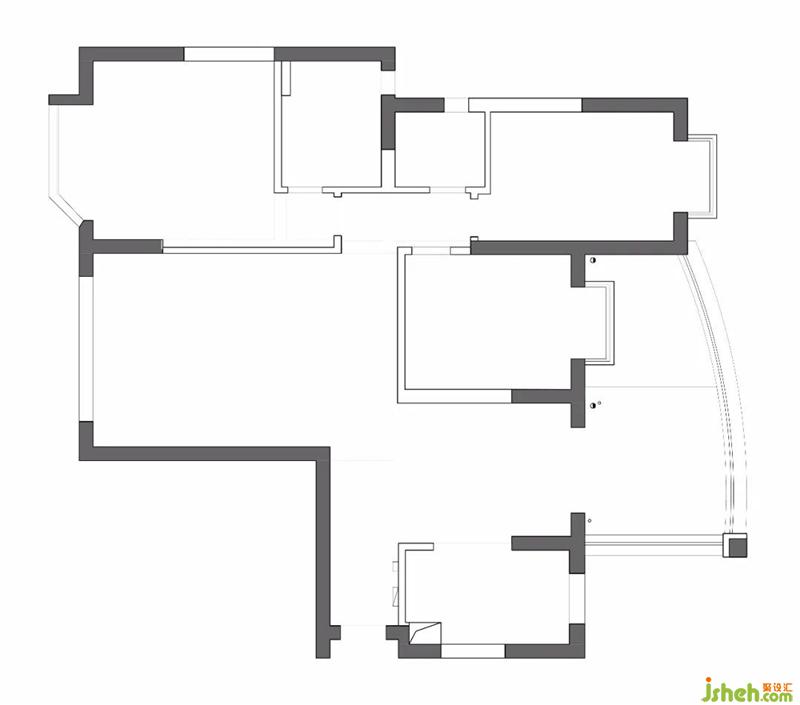 4.主衛(wèi)改變門洞方向,避免同一區(qū)域內(nèi)門洞較多,造成視覺擁堵。