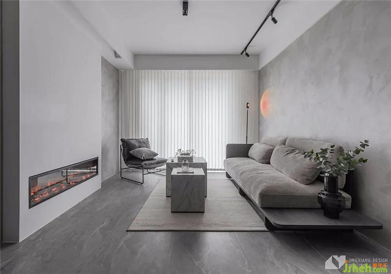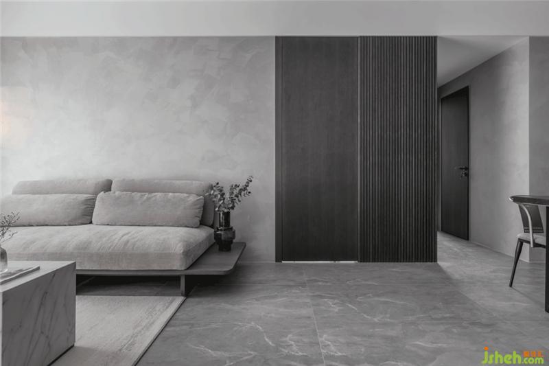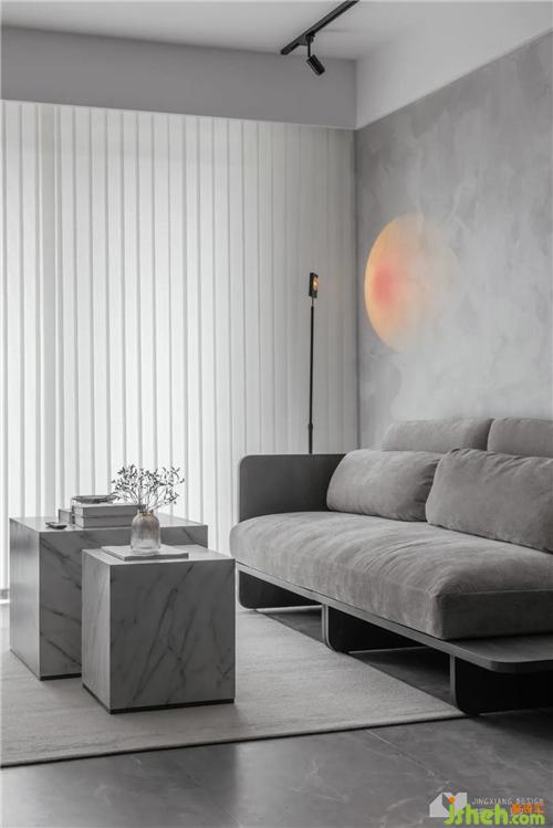 The main color of the living room is cement ash, which the owner likes. With the cold texture of floor tiles and marble materials, every corner of the space exudes the high cold atmosphere of no strangers. The coolness of the owner's character is integrated into the space design.