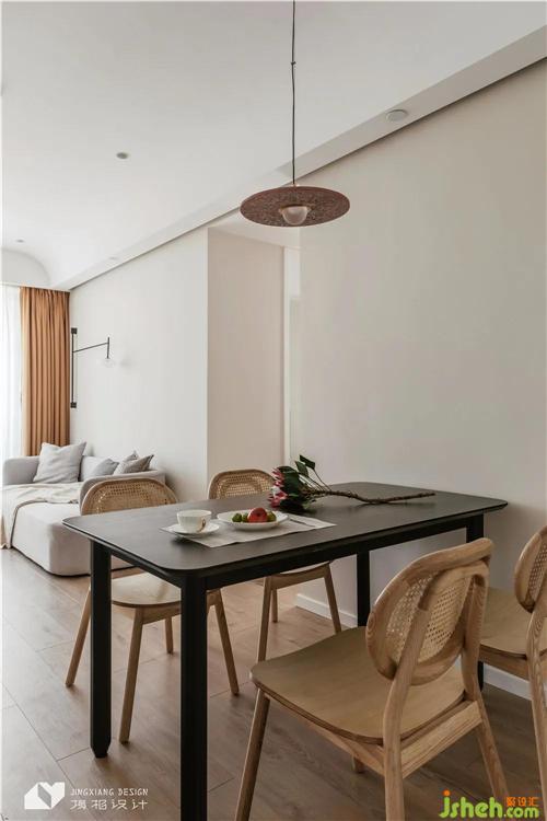 以文化角度解讀餐桌形態(tài),長形餐桌契合都市匆忙的生活節(jié)奏?;【€融入餐角設計,弱化了直角帶給餐廳的刻意和呆板。