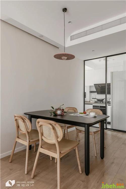 The kitchen space is separated by a transparent glass sliding door, and the sense of communication between the two areas is enhanced. Cooking is no longer a battle between one person and pots and pans. The sliding door design saves space.