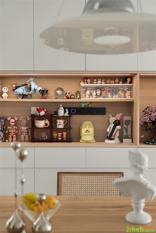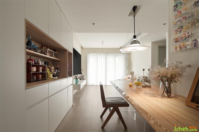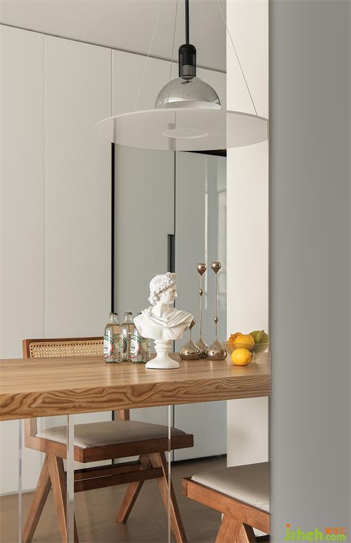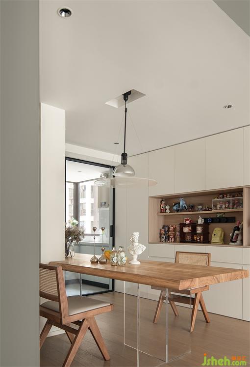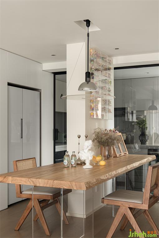 打通廚房餐廳空間,餐桌定制造型與承重墻結(jié)合