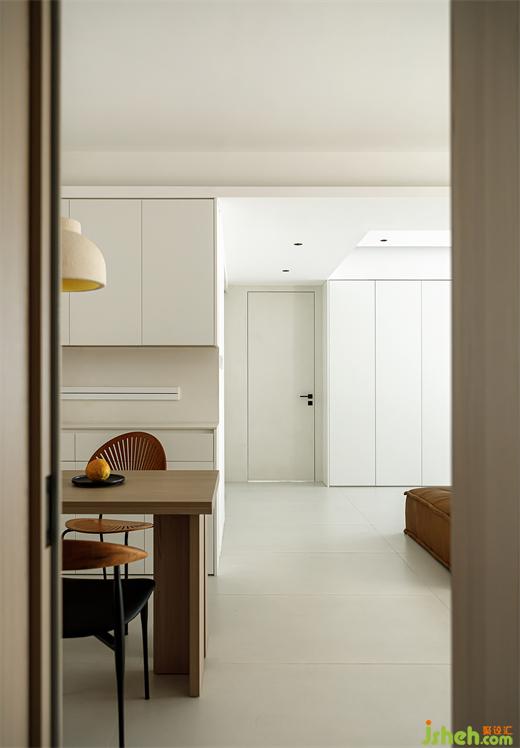 在這個家原本并沒有玄關(guān)區(qū),境相設(shè)計師巧妙地將大門外移,增設(shè)了玄關(guān)區(qū),讓整個空間更有完整性。