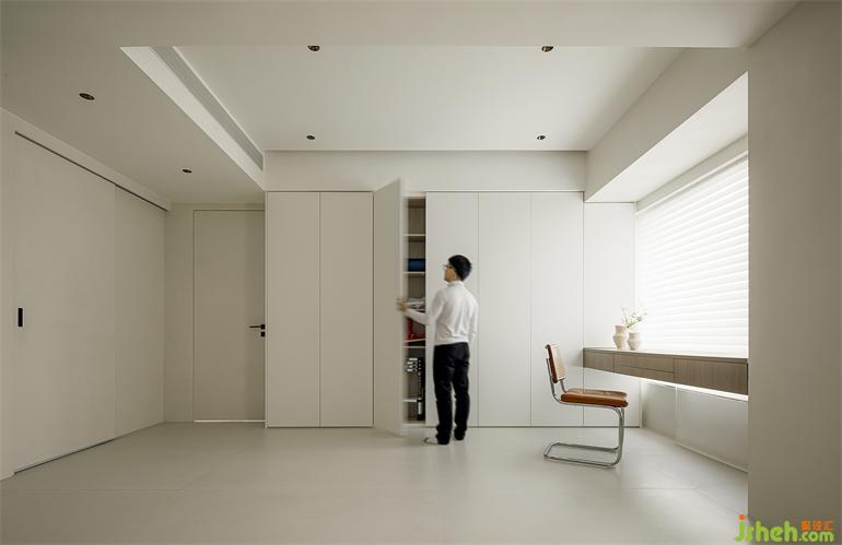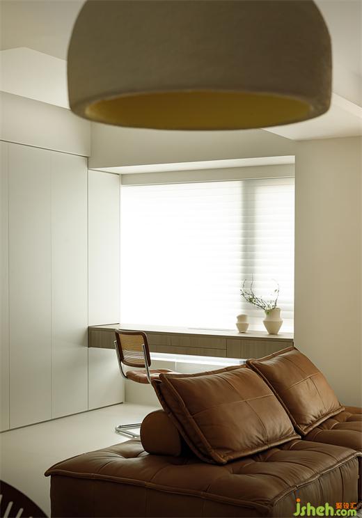 境相設(shè)計師在客廳增設(shè)一整排柜子為將來可以收納更多的物品,同時在窗邊安排了書桌位。
