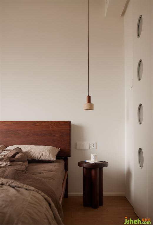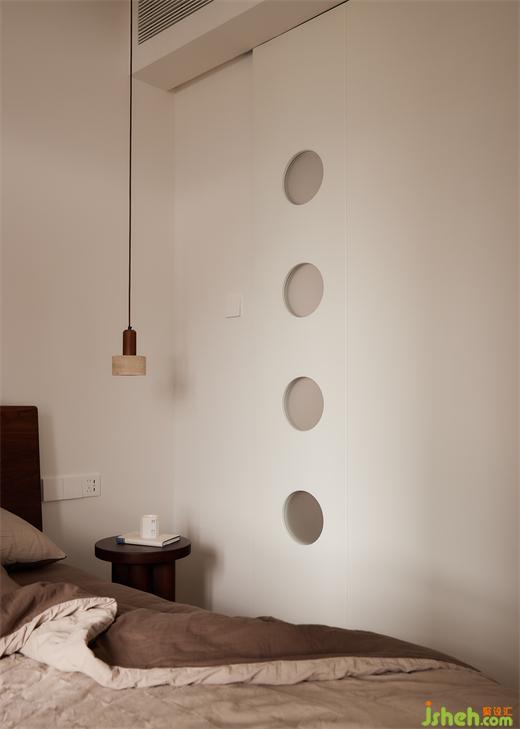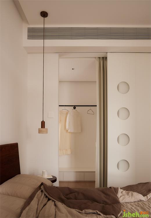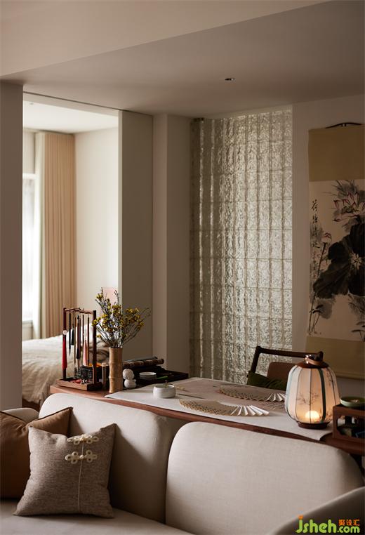 次臥:兩個次臥打通,合并為多功能室,作為辦公、古箏、臨時(shí)休息區(qū)。大開間玻璃移門,視覺通透,拆除客廳墻體內(nèi)退,房門打開后,客廳與次臥視覺得到最大限度延伸。